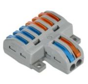 Клемма строительно-монтажная проходная серии 222 предназначена для соединения одножильных и многожильных медных проводников без использования инструмента в электрических сетях переменного и постоянного тока. Клемма допускает многократное присоединение и отсоединение проводников. Количество подключаемых проводников - 2/2.