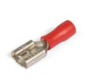• Предназначены для формирования быстроразъемных изолированных соединений многопроволочных медных проводов с клеммными выходами электрооборудования типа «папа» или наконечниками типа «папа» • Материал изоляции: самозатухающий ПВХ.Класс V-0 по UL94 • Термостойкость изоляции: 75 °C • Материал разъема: латунь марки Л63 • Покрытие разъема: электролитическое лужение • Максимальное напряжение: 400 В • Особенности конструкции: • разъемы интегрированы в полностью изолированный корпус, обеспечивающий механическую защиту и изоляцию разъемного соединения • поперечные засечки на внутренней поверхности трубной части разъемов увеличивают механическую прочность соединения с жилой • каждая клемма имеет конструктивный фиксатор замкового типа для прочного механического соединения с разъемом «папа» • Опрессовка проводника поверх изолирующей манжеты